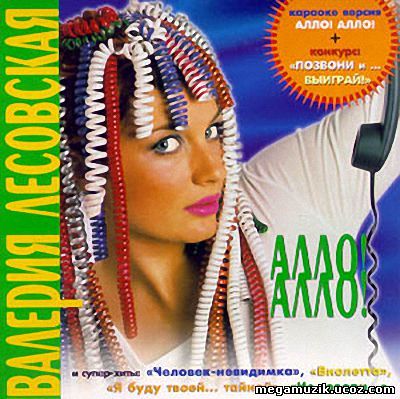 | ВАЛЕРИЯ ЛЕСОВСКАЯ - Алло, алло 2000(ех - Шиншиллы)Украина/Россия (г. Днепропетровск - г. Москва)01 Алло, Алло Доступно только для пользователей02 Ненужный дождь 03 Если нет любви 04 Езжай на такси05 Человек-невидимка 06 Я буду твоей тайной 07 9 c половиной недель08 Виолетта 09 А у стола три ножки (feat Папоротник)10 Джин11 Не говори, что ты любишь меня